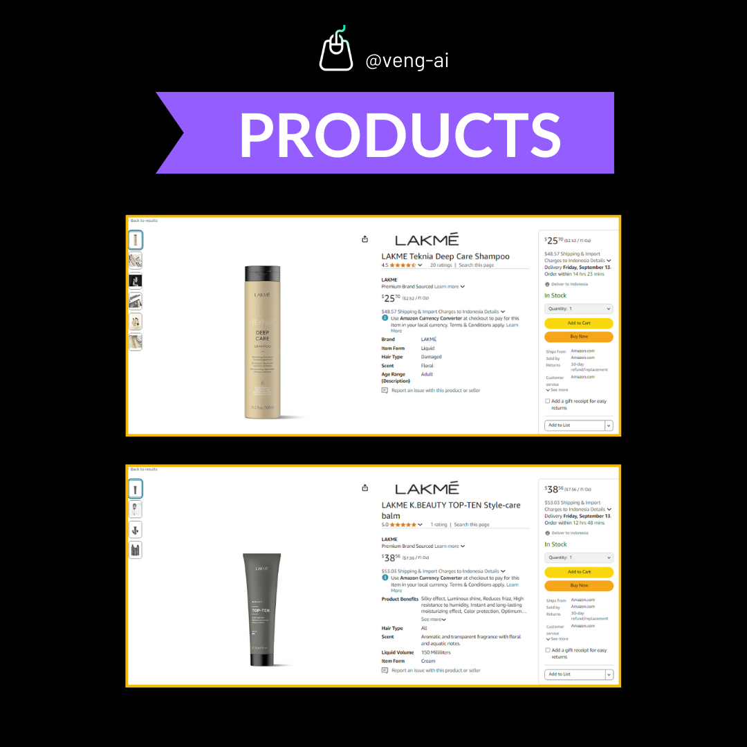 Library visual framework VENG(AI), contoh Amazon store, pemikiran margin, dan tulisan pilihan Nicolò Robba tentang produk, startup, dan growth.